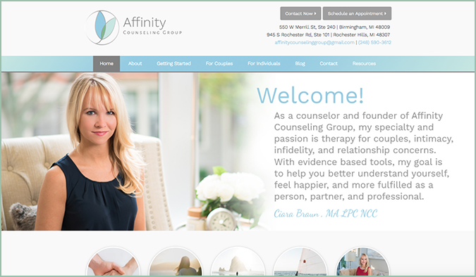 Ciara’s Brighter Vision website for Affinity Counseling Group