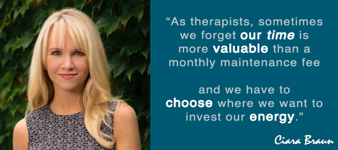 Introducing June’s brilliant Brighter Spotlight, Ciara Braun. As someone who falls into a narrow niche of therapy, Ciara’s practice marketing is extra important to get her name out to the right kinds of clients. And yet, even after a friend told her that it would probably take up to a year and a half to fill up her practice with clients, Ciara beat the odds and got it done in six months flat.